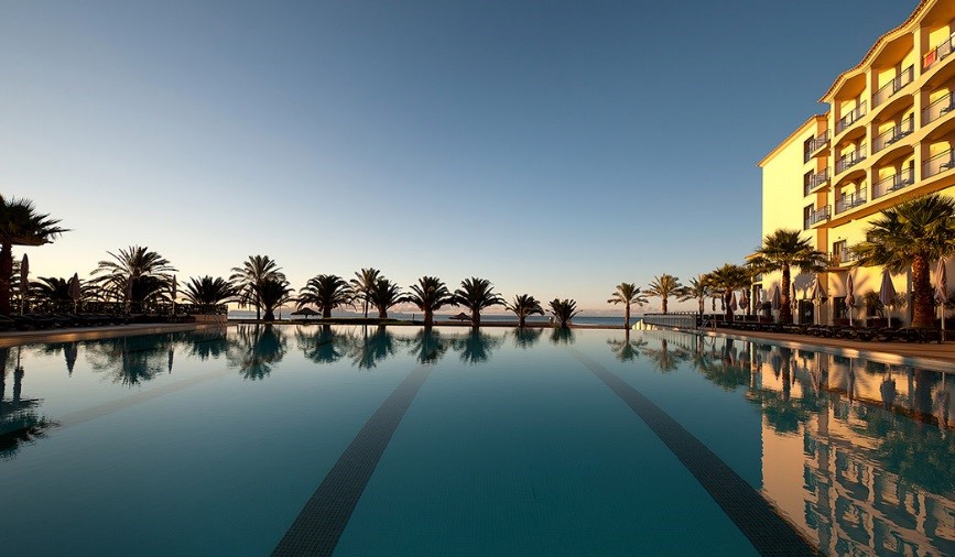 This hotel in Madeira, only five minutes away from the airport, has 262 warm and sophisticated rooms. It also features two restaurants, two bars, an outdoor pool and spa with heated indoor pool, sauna, Turkish bath, gym and massage rooms.